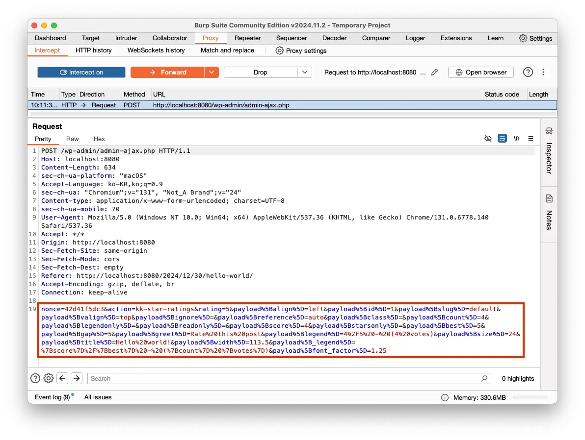 WordPress 플러그인 The The kk Star Ratings - Rate Post & Collect User Feedbacks 이 활성화된 상태에서 게시글의 평점을 클릭할 경우 아래의 HTTP Request 패킷이 발생하게 됩니다.