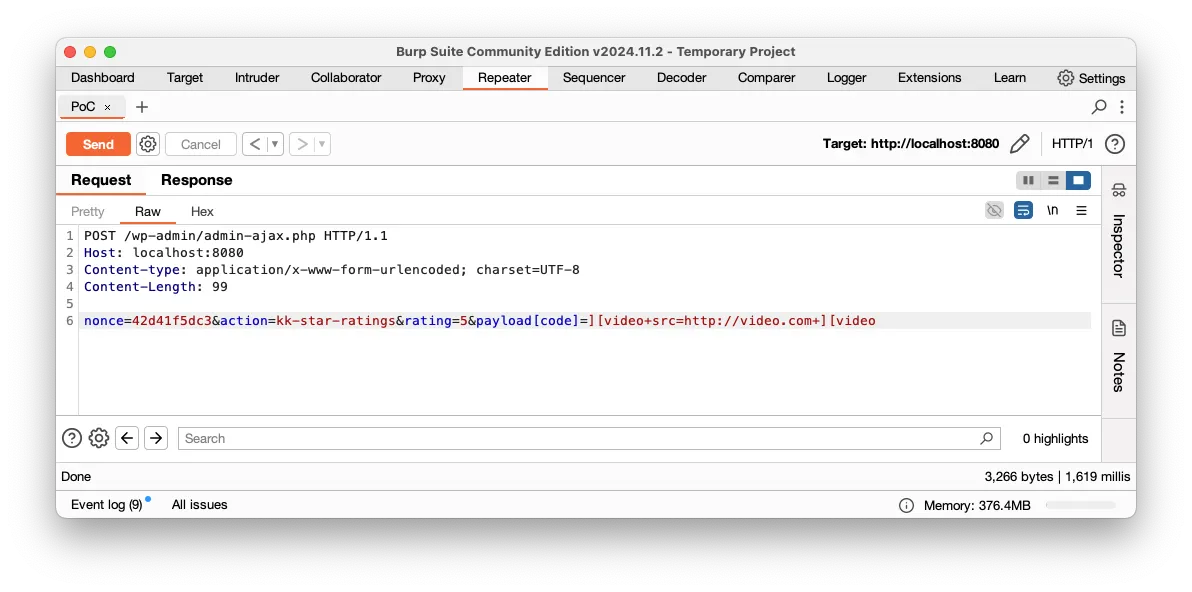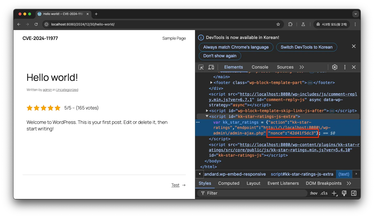 아래 요청 페이로드에서 사용되는 nonce 값은 평점 기록이 포함된 게시글 페이지에서 확인할 수 있습니다.