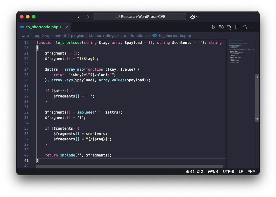 이러한 취약점을 통해 공격자는 WordPress의 모든 단축 코드를 실행할 수 있으며, 이는 WordPress 플러그인이나 테마에서 제공하는 단축 코드까지 포함됩니다. 특히 파일 업로드나 데이터베이스 조작과 관련된 단축 코드가 있다면 심각한 보안 위험이 발생할 수 있습니다.