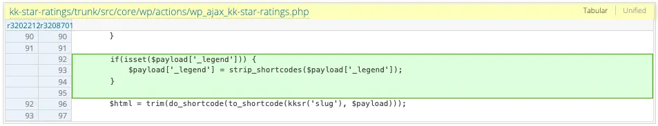 해당 취약점의 패치는 요청 페이로드의 payload를 변수 $payload로 초기화한 후, do_shortcode 함수 호출 전에 $payload['_legend'] 값이 있을 경우 strip_shortcodes 함수로 단축 코드를 제거하였습니다.