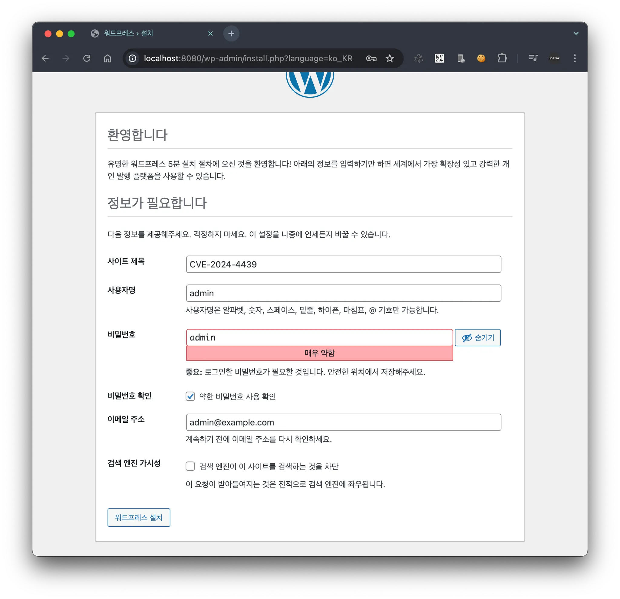이미 WordPress가 설치되어 있는 경우 바로 ‘2. XSS 페이로드 설정’ 로 이동하셔도 됩니다