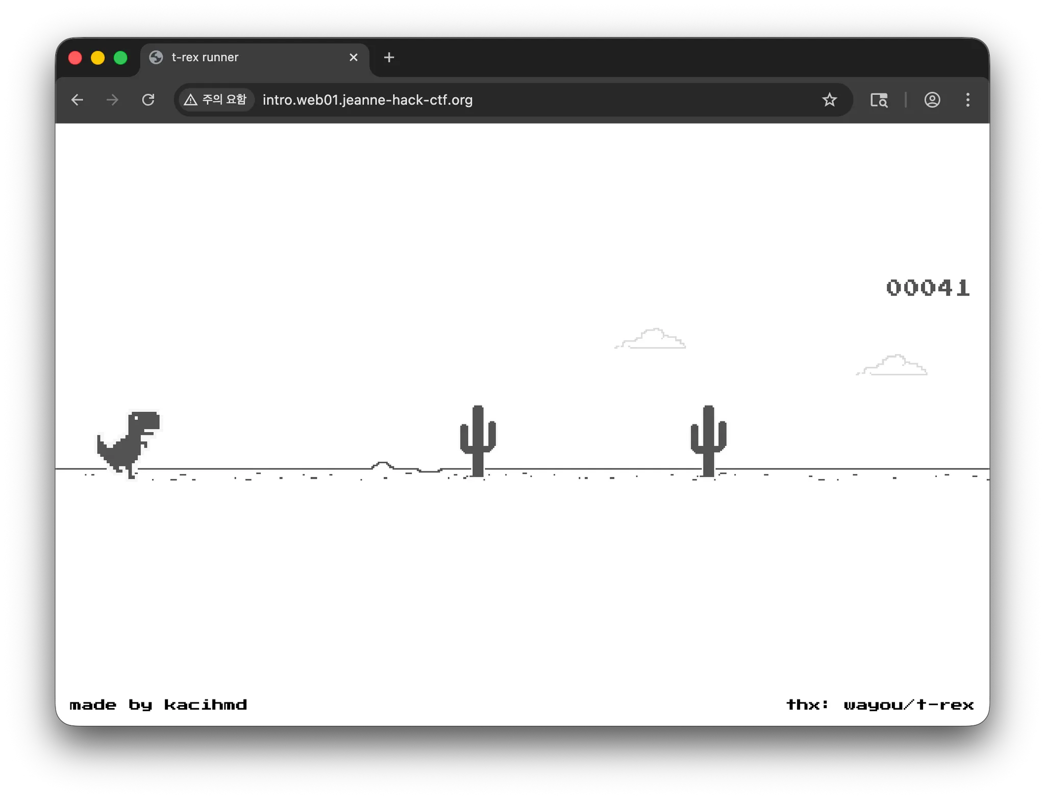 문제에서 제공된 URL에 접속하면 Chrome 브라우저의 오프라인 공룡 게임이 표시됩니다.