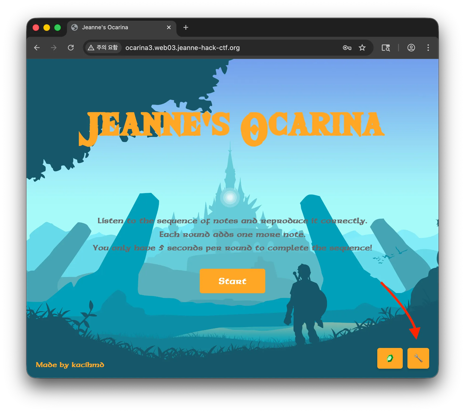 해당 문제에서 제공하는 URL에 접속하면 다음과 같이 ‘음표 순서를 듣고 정확하게 따라하세요.’ 라는 문구가 등장하며, 각 라운드당 음표가 하나씩 추가되고 5초 안에 음표를 완성해야 한다고 나와있습니다.