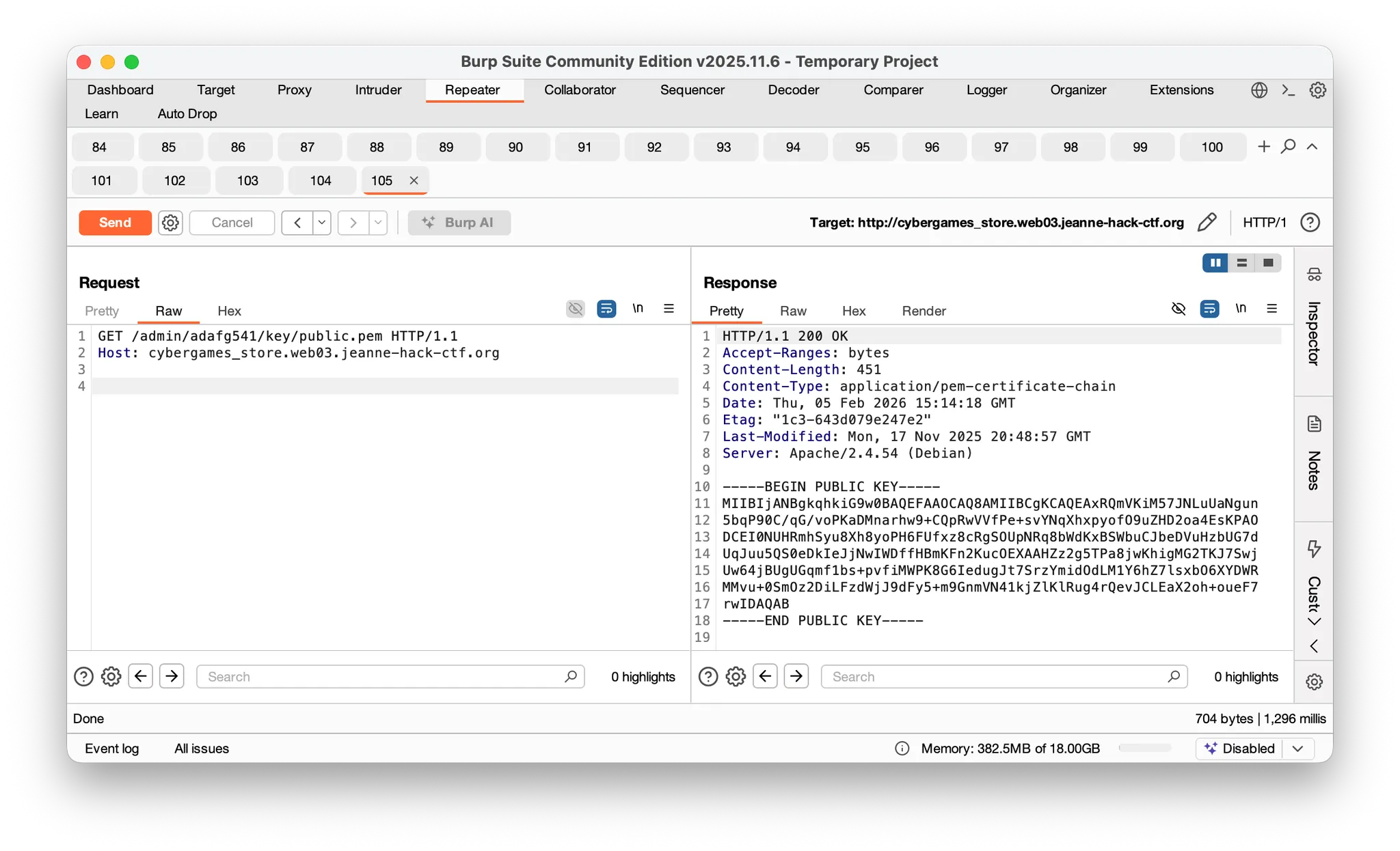 그리고 위 페이로드 값 중 경로로 보이는 곳을 요청하면 다음과 같이 공개키를 확인할 수 있었습니다.