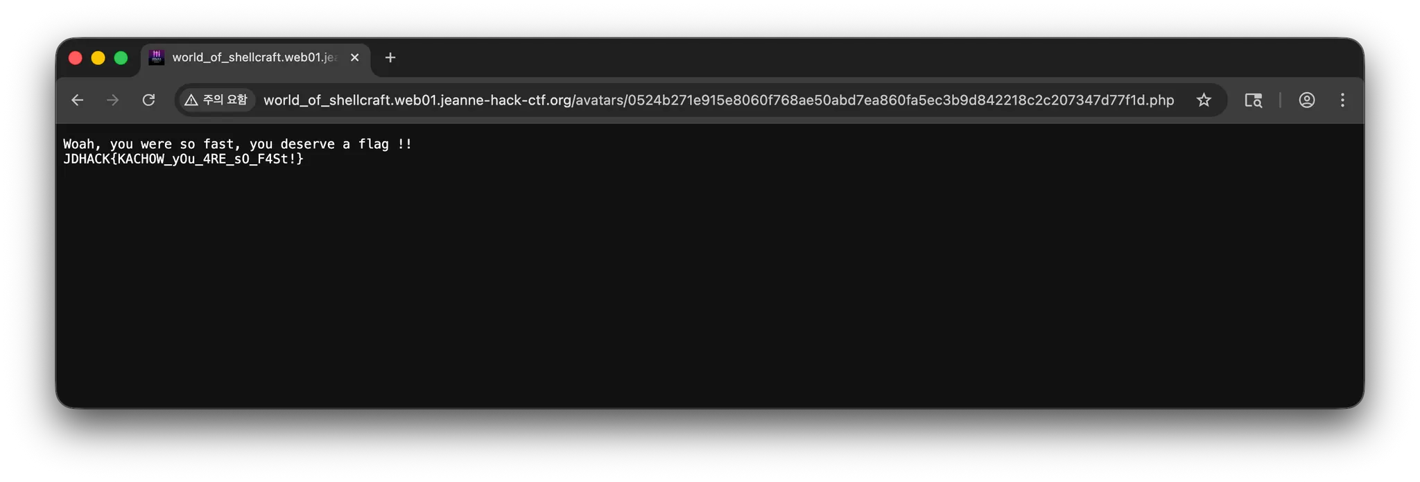 그리고 다시 업로드하는 과정에서 rename 함수 첫 번째 값(.php)을 요청하니 아래와 같이 플래그를 발견할 수 있었습니다.