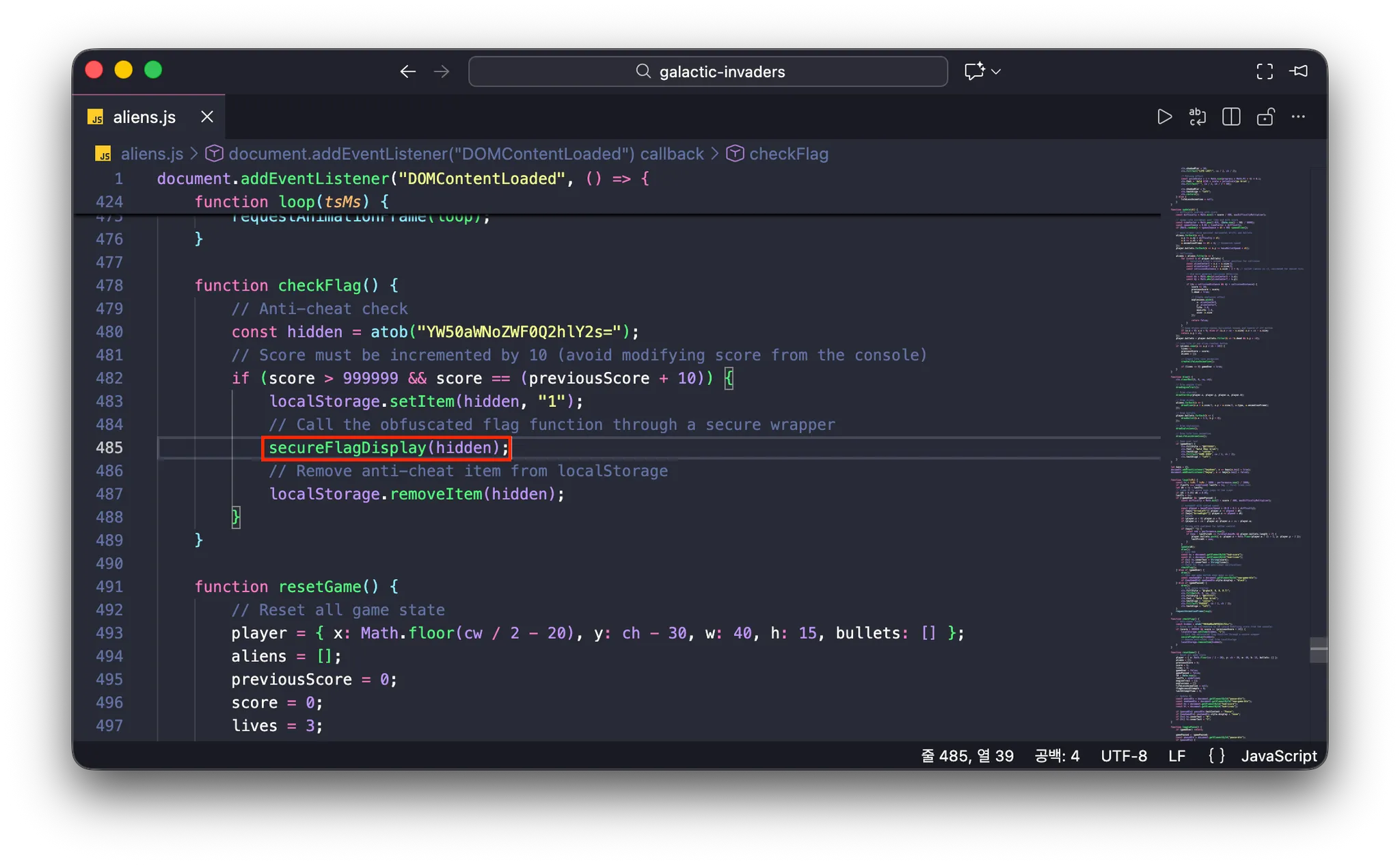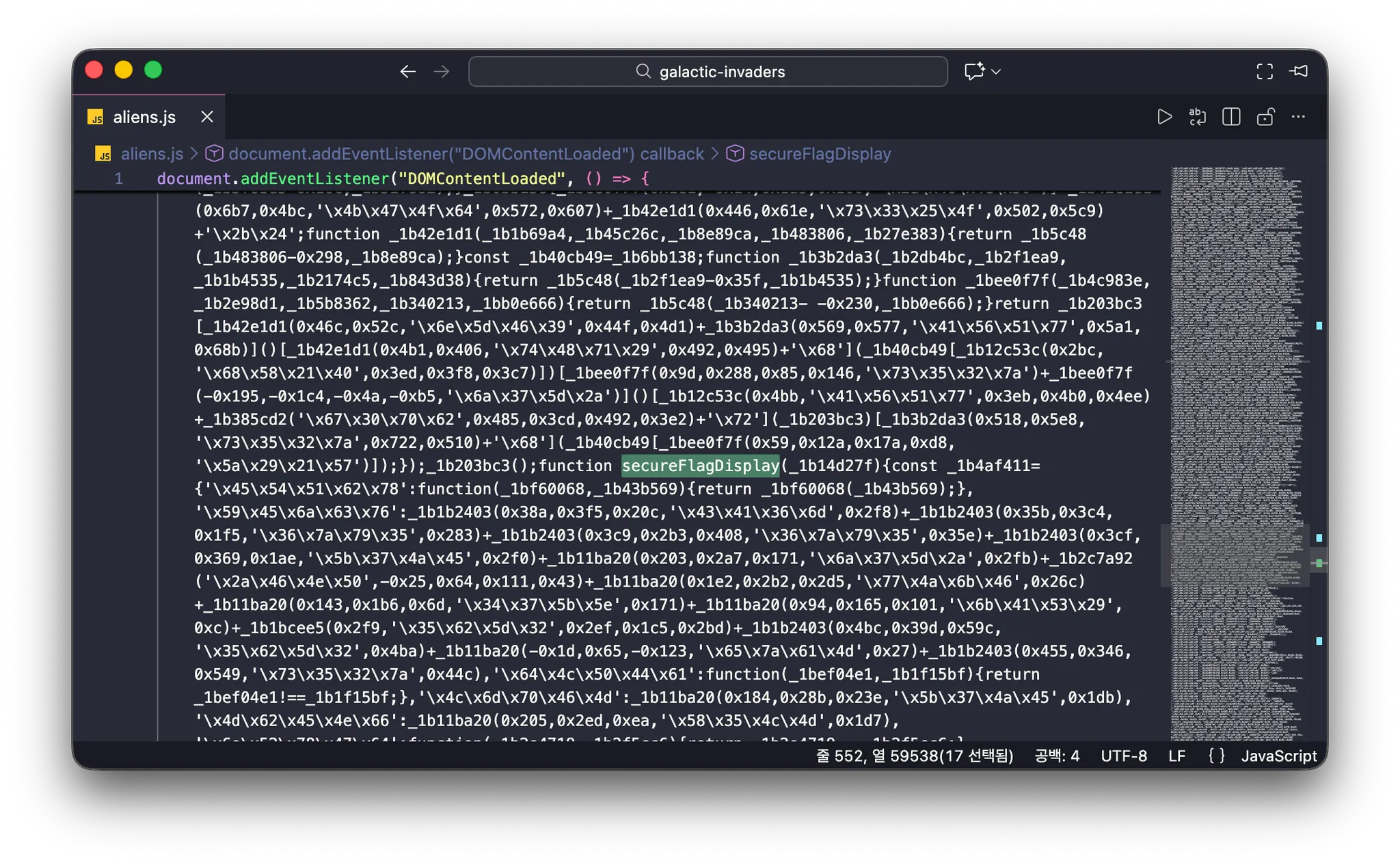 처음 게임 소스코드를 먼저 살펴보았고 이중 secureFlagDisplay 라는 함수를 발견하게 되었습니다.