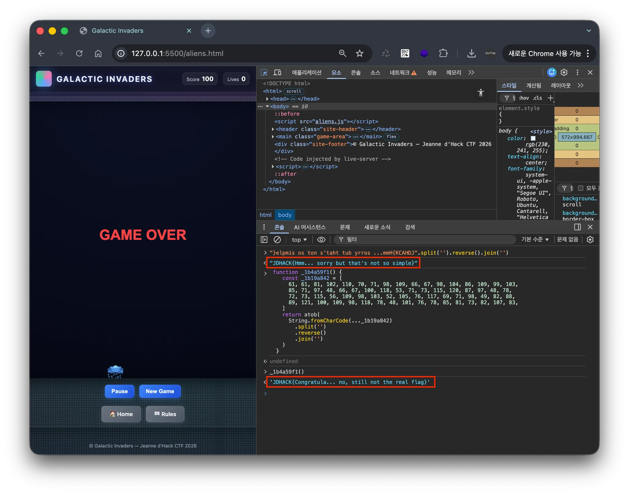 다시 게임을 플레이하니 아래와 같이 플래그가 등장했습니다.