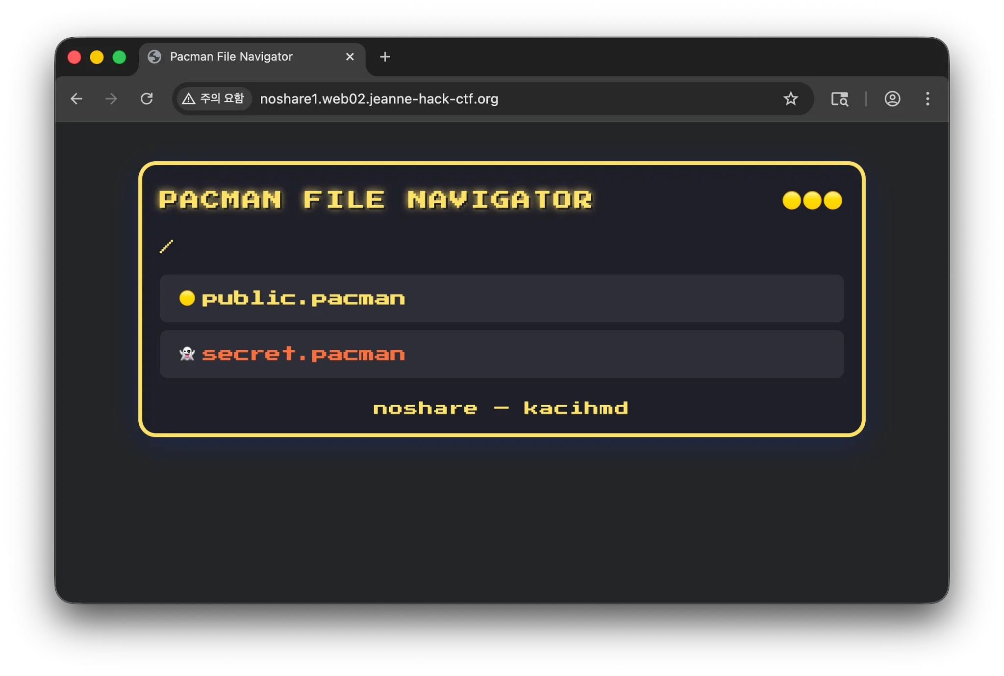 문제에서 제공하는 URL에 접속하면 다음과 같이 public.pacman 과 secret.pacman 을 확인할 수 있습니다