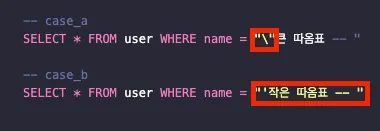 SELECT * FROM user WHERE name = "\"큰 따옴표 -- "