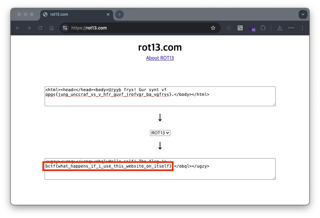 즉, 사용자가 입력한 URL의 응답 데이터에서 텍스트 노드를 ROT13 인코딩 방식으로 적용한 후 반환합니다.