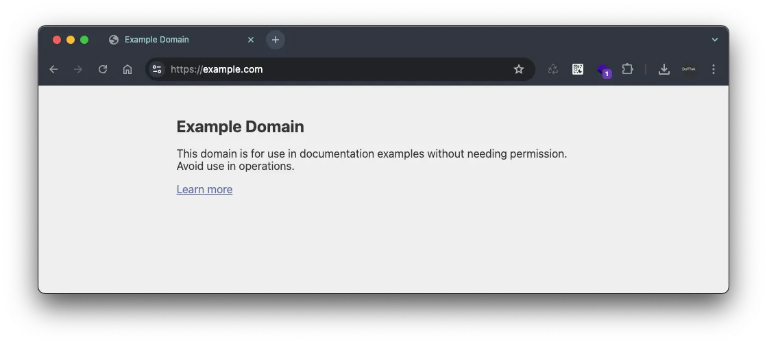 위 화면에 나오는 텍스트 내용은 이해할 수 없지만, 실제 https://example.com 의 페이지와 유사하게 나오는 것을 알 수 있습니다.