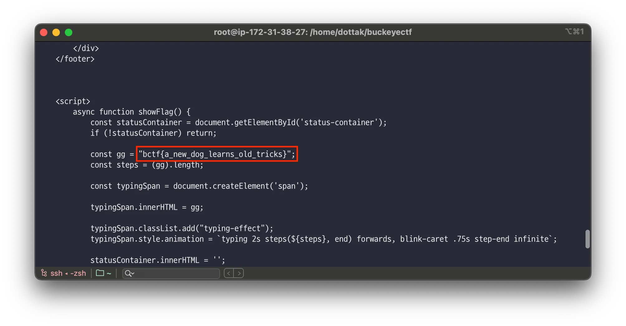 return reply.type('text/html').send(`Hello self! The flag is ${FLAG}.`)